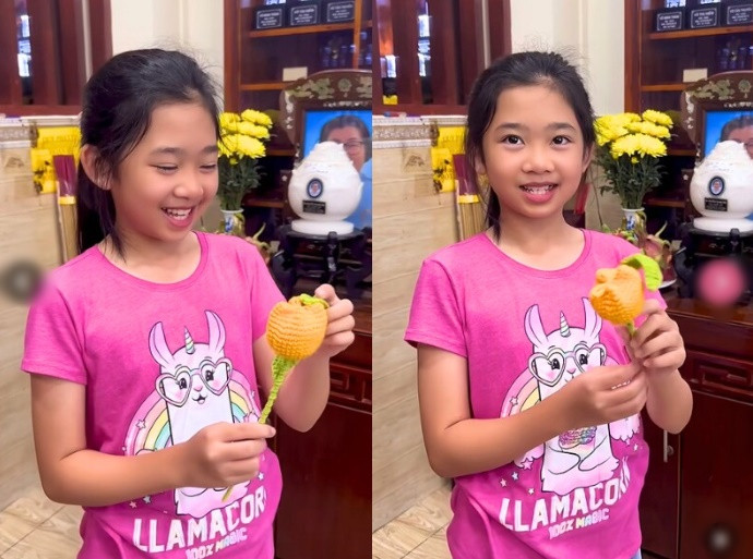 Trong ngày giỗ mẹ, con gái Phùng Ngọc Huy còn tự tay đan móc một bông hoa tặng mẹ. Khoảnh khắc này khiến nhiều người chứng kiến ai cũng xúc động.