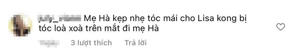 Đây không phải lần đầu Hà Hồ lên tiếng thẳng thắn trước những lời nhắc nhở từ người hâm mộ về ngoại hình của ái nữ. Thời điểm Lisa còn nhỏ, nhóc tỳ thường xuyên xuất hiện với đầu tóc lòa xòa, mồ hôi nhễ nhại khiến tóc bết hết xuống mặt.